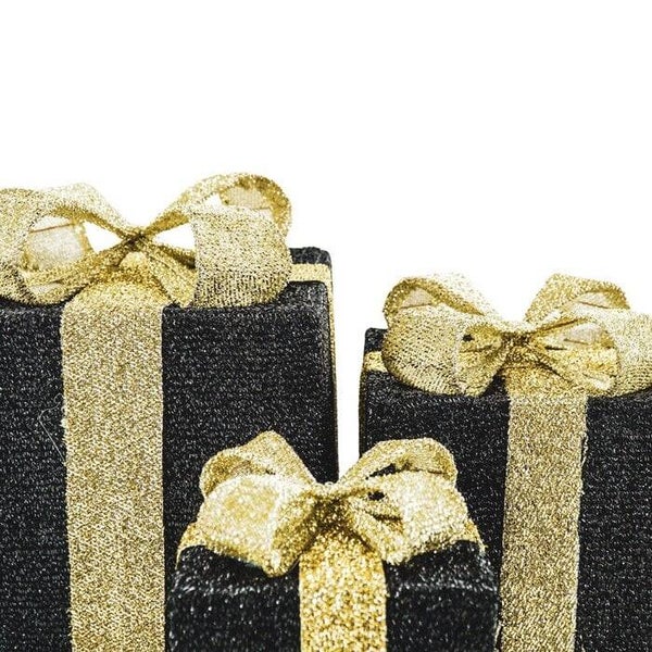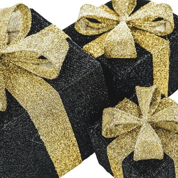 LED Xmas Gift - S3 - Polysenee - zwart/goud -15/20/25cm