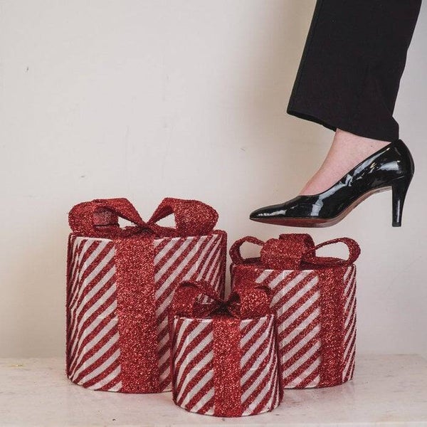 LED Xmas Gift - S3 - Polysenee - Rood/White -15/20/25cm