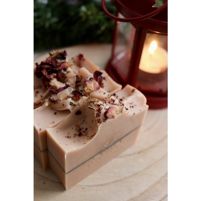 Deze prachtige natuurlijke zeep is een bloemenmix van essentiële citroen-, sinaasappel- en geraniumolie. Ze ruikt mild en rustgevend. De rode Franse klei en kaolin reinigen zachtjes en laten een voedend huidgevoel achter, terwijl groenteoliën en boter hun huid teder bederven.